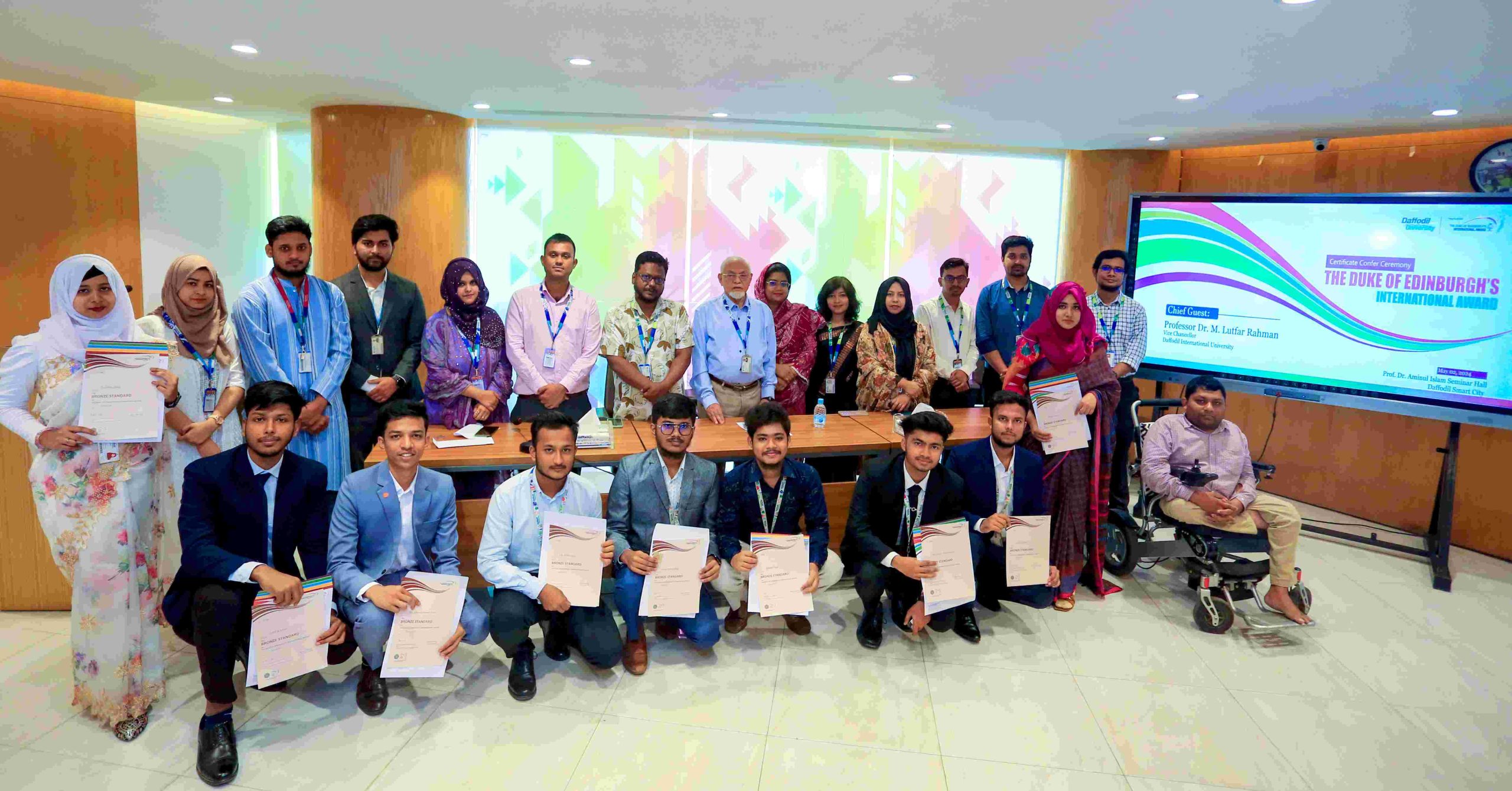 অনুষ্ঠানে জানানো হয়, এ বছর ড্রাফোডিল ইন্টারন্যাশনাল ইউনিভার্সিটির ৭০ জন অংশগ্রহণকারী সফলভাবে ব্রোঞ্জ, সিলভার এবং গোল্ড পুরস্কার জিতেছে। এই কৃতিত্বগুলি স্ব-উন্নতি এবং কমিউনিটির সেবা করার প্রতি ডিআইইউ-এর অংশগ্রহণের তীব্র নিষ্ঠা এবং অটলতাকে তুলে ধরে। অনুষ্ঠানের মূল ফোকাস ছিল এই সেমিস্টারের জন্য ১৩ জন অসামান্য তরুণ ব্যক্তিকে ব্রোঞ্জ পুরস্কার প্রদান। মেহেদী হাসান রাব্বি, কম্পিউটার সায়েন্স অ্যান্ড ইঞ্জিনিয়ারিং বিভাগের একজন শিক্ষার্থী এবং এওয়ার্ড প্রাপকদের মধ্যে একজন, সে তার অভিজ্ঞতা বর্ণনা করেছেন, যা তার সমবয়সীদের এবং উপস্থিত অন্যান্য অংশগ্রহণকারীদের জন্য অনুপ্রেরণার উৎস হিসেবে কাজ করছে। শোরভ দাস, আরেক ব্রোঞ্জ পুরস্কারপ্রাপ্ত এবং কম্পিউটার সায়েন্স অ্যান্ড ইঞ্জিনিয়ারিং বিভাগের একজন ছাত্র যিনি বর্তমানে পোল্যান্ডের ইরাসমাস এক্সচেঞ্জ প্রোগ্রামে সেমিস্টারে পড়ছেন, তিনিও ভিডিও কনফারেন্সিংয়ের মাধ্যমে তার অভিজ্ঞতা শেয়ার করেছেন। অনুষ্ঠানটি পুরস্কারপ্রাপ্তদের সার্টিফিকেট এবং পিন পদানের মাধ্যমে শেষ হয়, যা তাদের কঠোর পরিশ্রম, সংকল্প এবং স্থিতিস্থাপকতার প্রতীক।